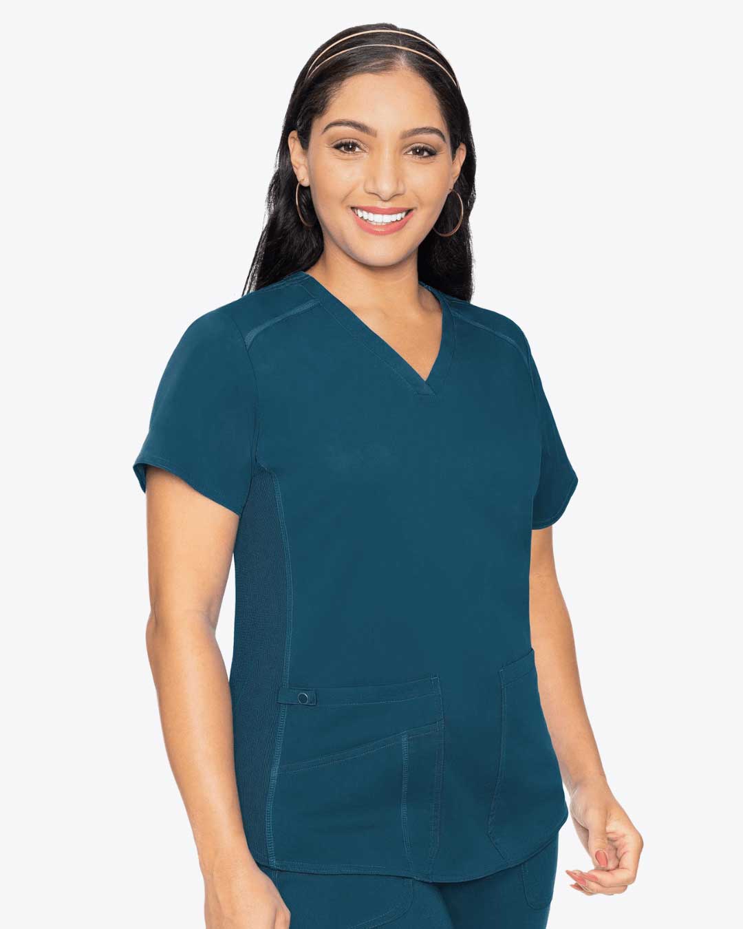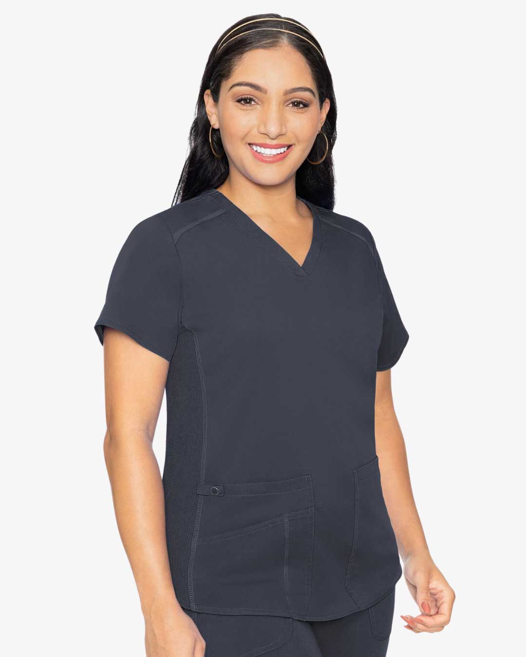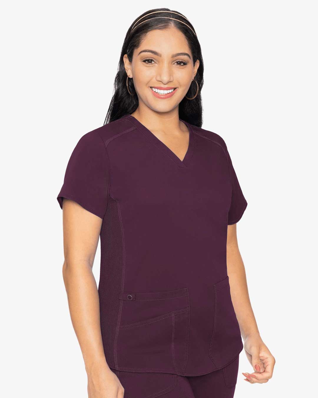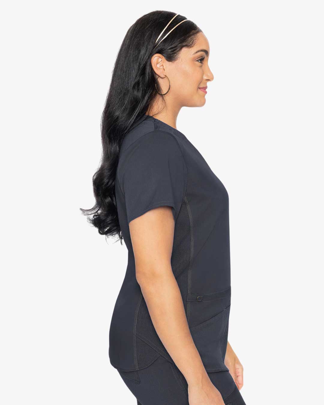 Take a little bit of luxury to work with this incredibly flattering scrub top.