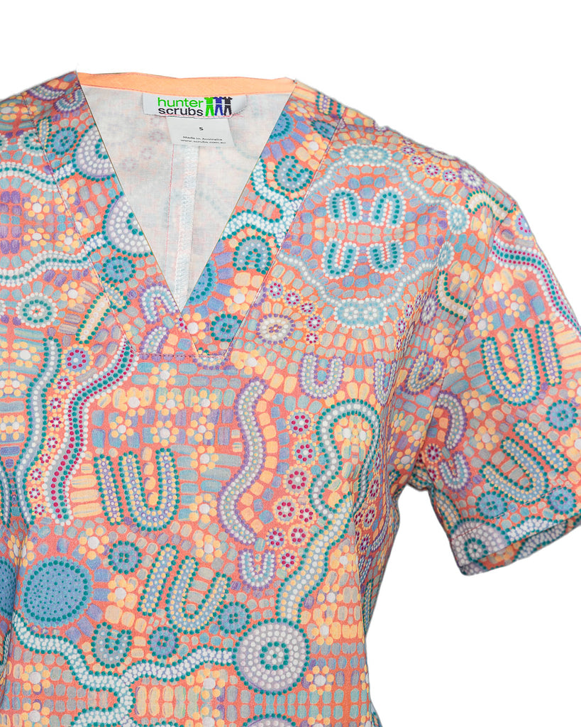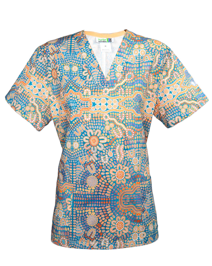 Indigenous Patterned Women's Scrub Top - by Saretta Fielding