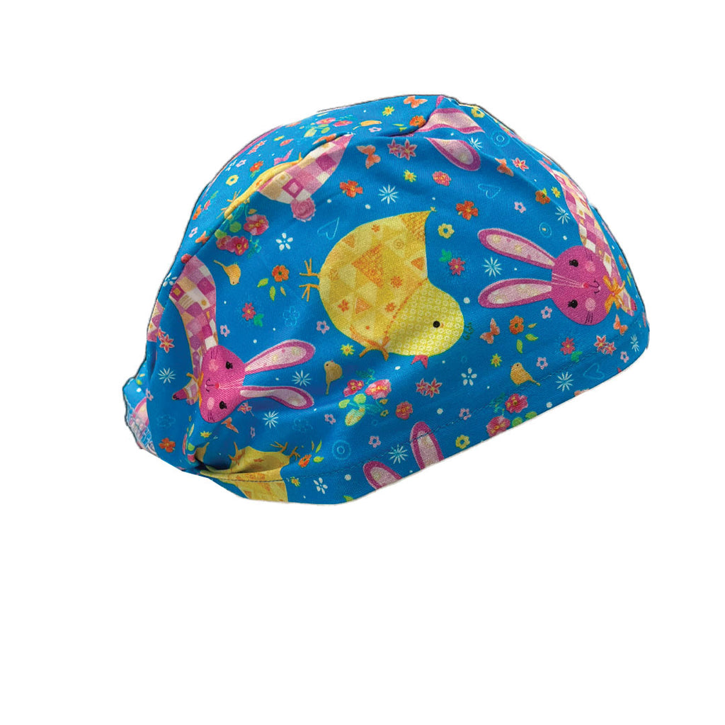 Our Elastic Back Scrub Cap has a classic shape and is secured with elastic in the back. It is only suitable for shorter hair.
