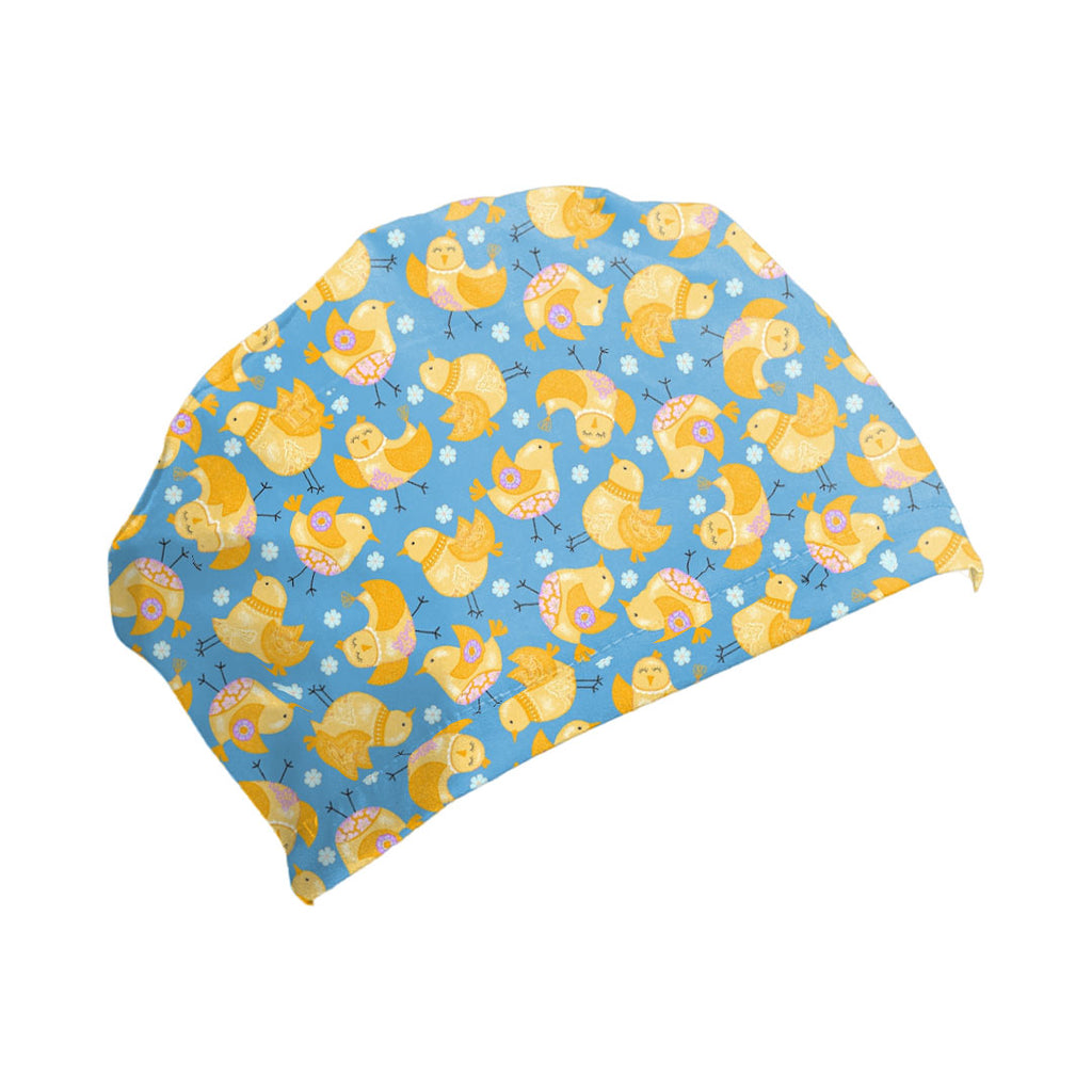 Toggle Scrub Cap has a classic shaped top with extra room in the back, and secures with elastic and a toggle drawstring at the back. It's best for medium to long hair.