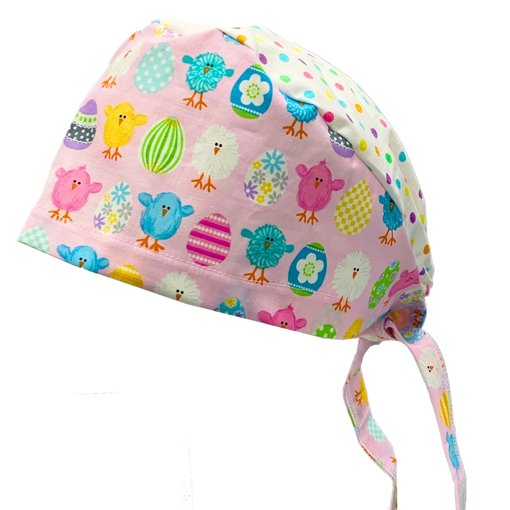 Tie Scrub Cap has a classic shaped top, with ties that securely fasten at the back. It's best for short to shoulder length hair.