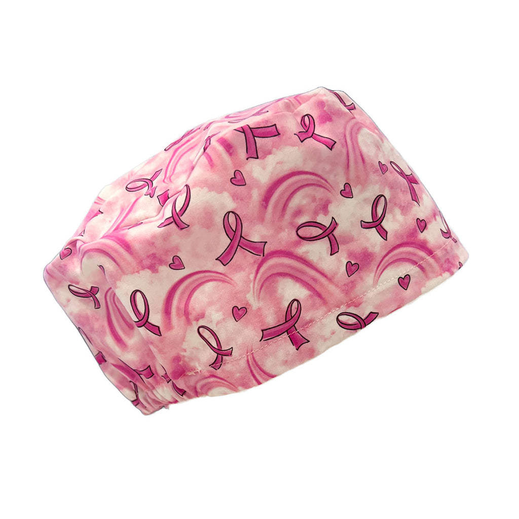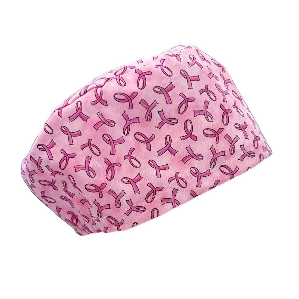 Pink Ribbon Elastic Back Scrub Caps - 1015E