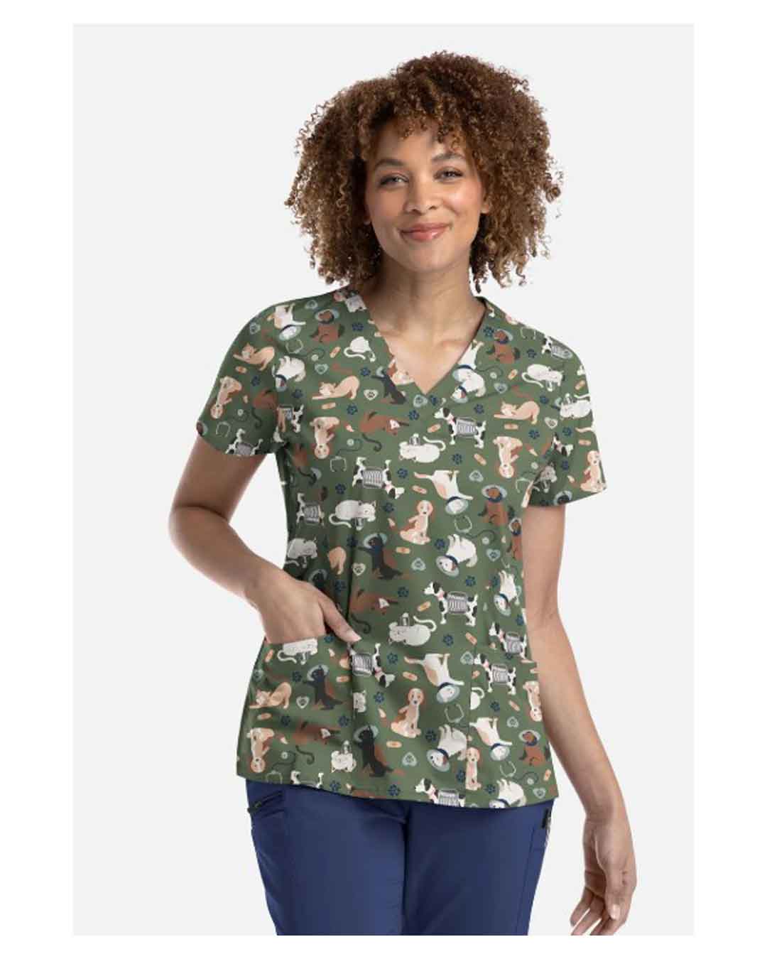 Long shifts deserve a little comfort and a lot of smiles. The Maevn Cuddly Check-Up Scrub Top is packed with adorable animal friends ready to brighten your day and bring a little extra warmth to every ward, clinic, or vet practice. Set on a soft olive background, this playful print features a delightful parade of cuddly creatures that make patient interactions a little lighter and staff rooms a little happier.