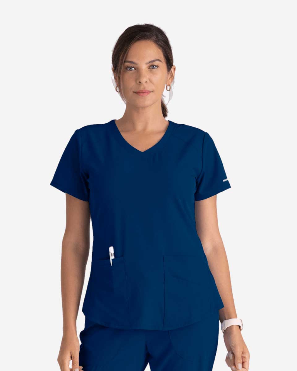 Get ultra-comfortable in this classic V- Neck scrub top from Skechers. Made from their signature ultra-stretchy fabric.