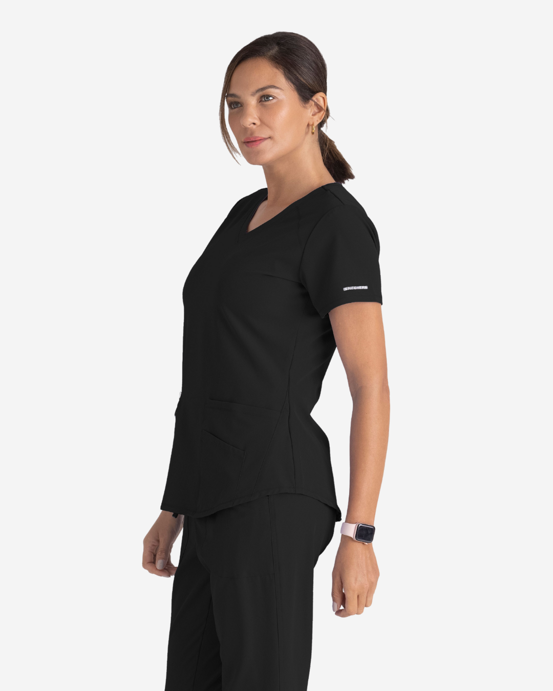 Get ultra-comfortable in this classic V- Neck scrub top from Skechers. Made from their signature ultra-stretchy fabric.