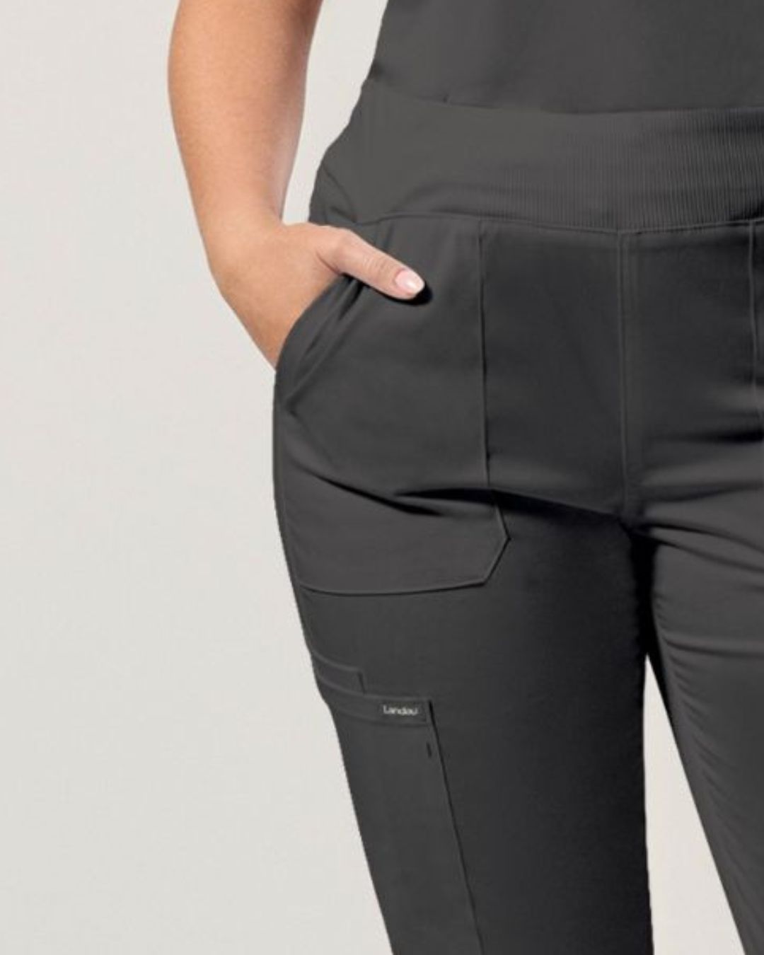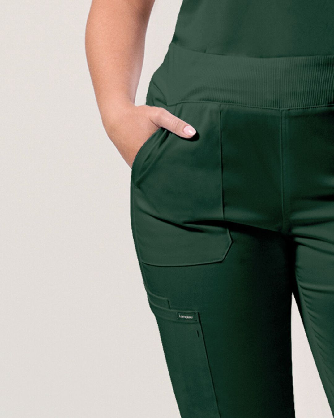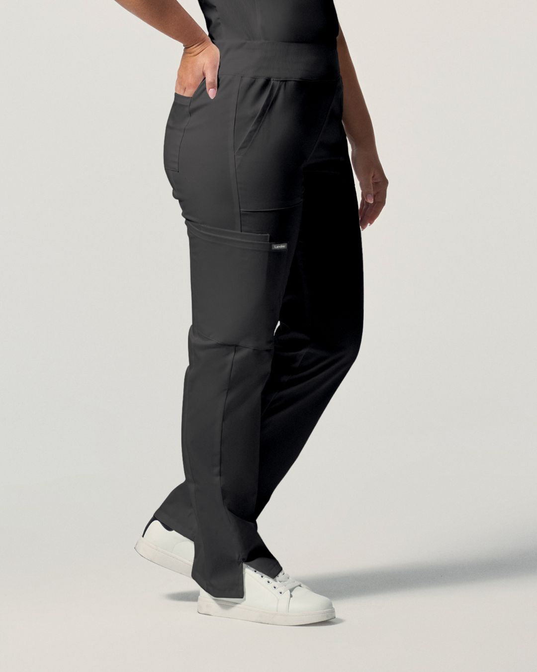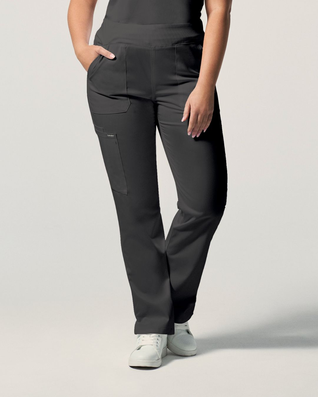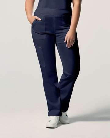 This modern fit, mid-rise, straight-leg pant sports a knit waistband and an internal drawstring for comfort and functionality. Featuring 2 cargo pockets with a hidden elastic loop to keep accessories organized, 2 front pockets and an additional back pocket - these scrub pants are designed to move with you all shift long.